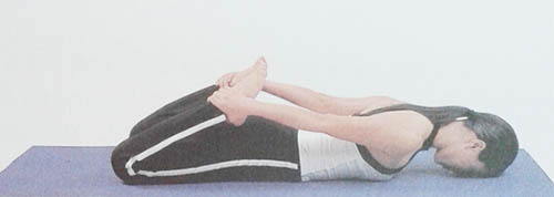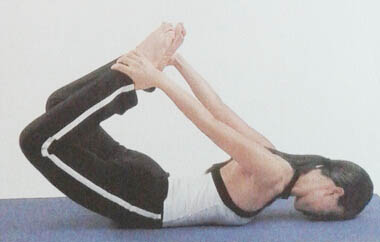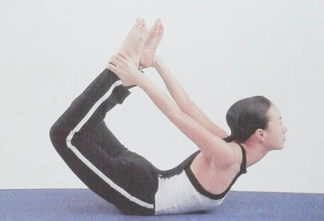 练习弓式时,要用手抓住双脚,防止身体向一侧倾斜,保持身体均衡状态后,腹部开始不停地蠕动。