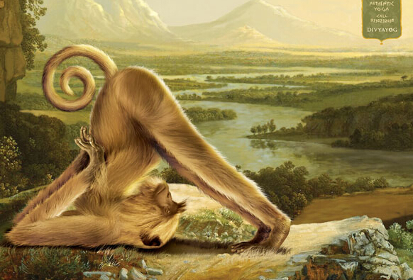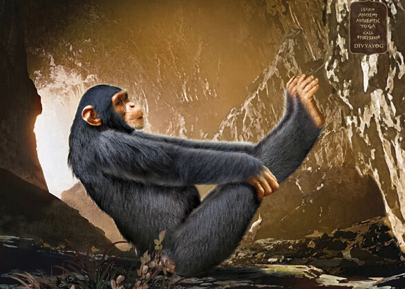 这是需要力量的瑜伽动作,通过猴子做出来的瑜伽,让人觉得很可爱!